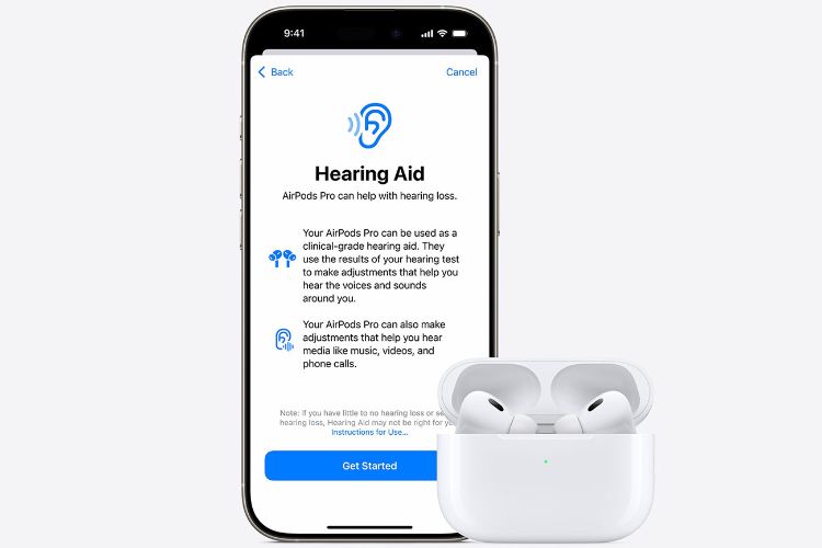 تعمل ميزة السماعة الطبية في سماعات AirPods Pro 2 من Apple على تضخيم الأصوات المحيطة وتساعد البالغين والأشخاص الذين يعانون من ضعف سمع خفيف إلى متوسط. تتوفر هذه الميزة في البلدان المدعومة بدون تكلفة إضافية من خلال تحديثات البرامج المجانية.
